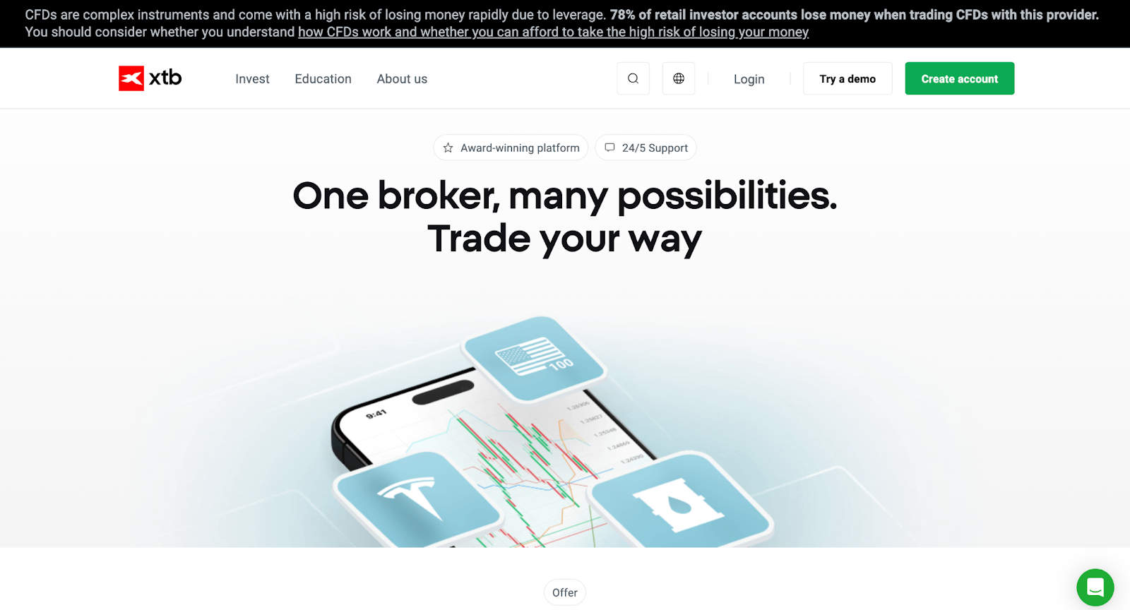 Founded in 2002 and listed on the Warsaw Stock Exchange (ticker: XTB), XTB is a popular European broker known for fast execution, tight spreads, and its advanced proprietary trading platform, xStation 5. While it supports over 7,000 instruments, XTB stands out most for forex traders looking for a high-performance platform with competitive pricing, intuitive tools, and in-built news and analysis.