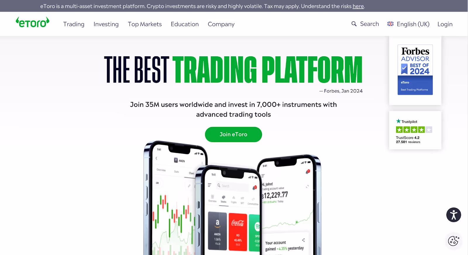 - Multi-asset support, including crypto, stocks, ETFs, forex and commodities