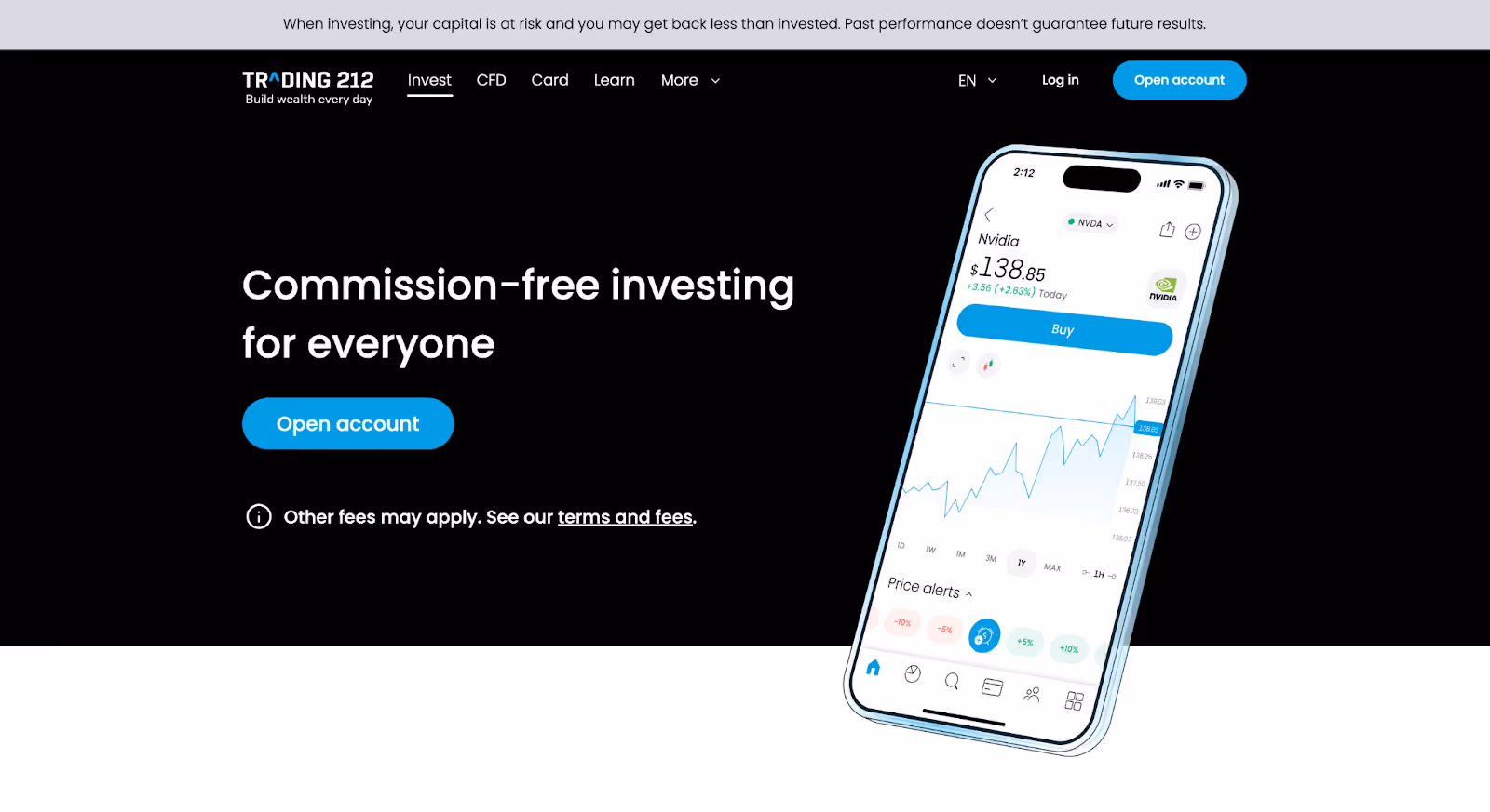 Trading 212 is a UK-based fintech company that offers commission-free trading on stocks, ETFs, and CFDs. The platform is designed to be user-friendly, making it suitable for beginners and casual investors just starting out. The platform also offers a free fractional share worth up to €100!