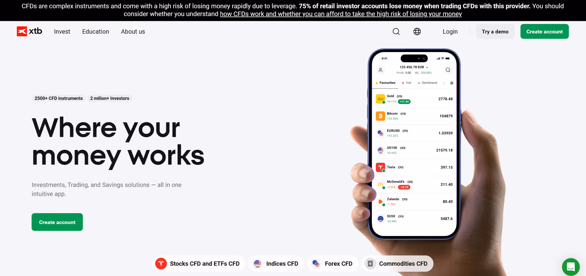 Founded in 2002, XTB is a publicly traded company listed on the Warsaw Stock Exchange and a global broker based in Poland, known for its robust trading app and extensive educational resources. It offers a wide range of over 7,000+ financial instruments, including stocks, ETFs, forex, commodities, and indices. The platform is particularly appealing to active traders and those interested in CFD trading.