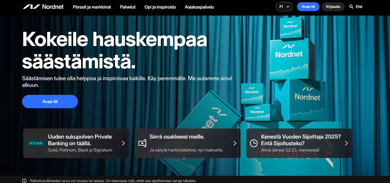 - Stocks, ETFs, and funds (including the Nordnet Index Funds and Nordnet One balanced fund series)