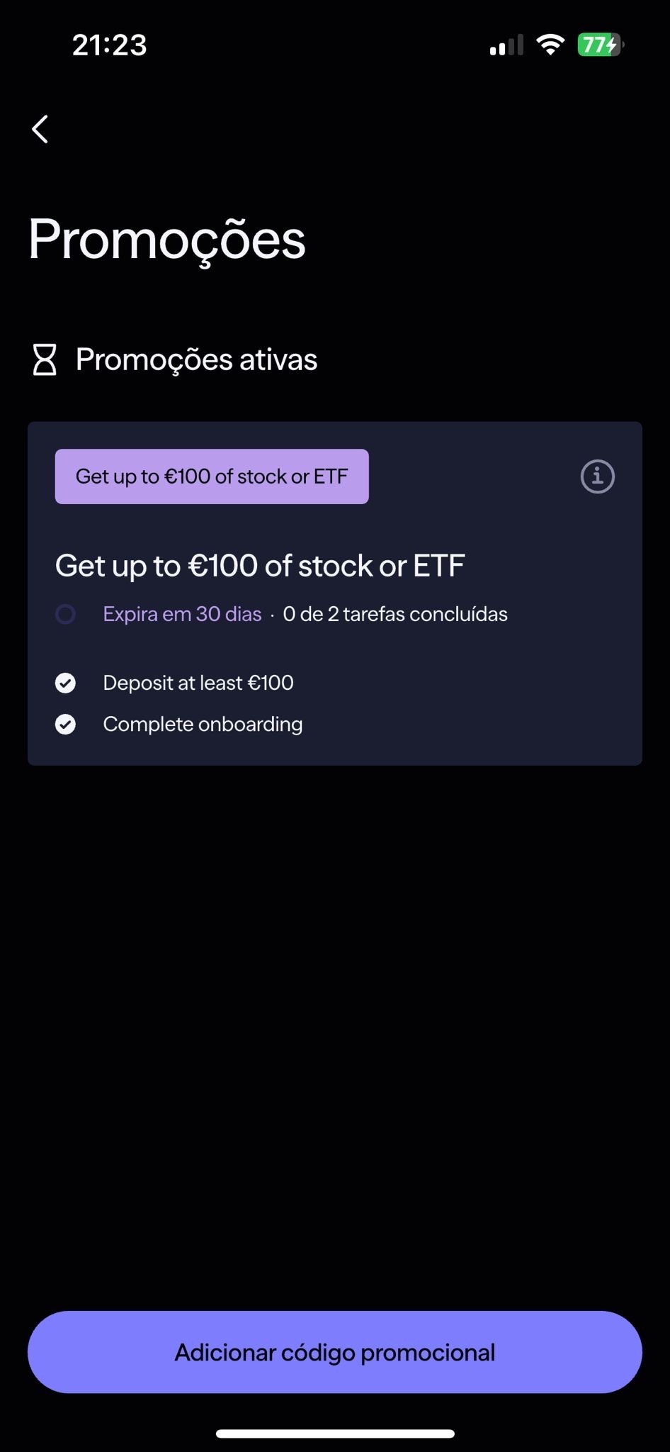 Complete the KYC (ID verification) and fund your account with at least €100 (or equivalent): you have 30 days to do this after clicking the link: