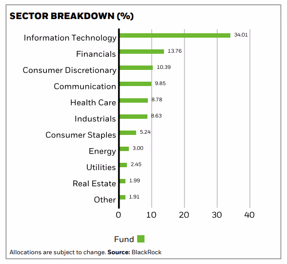 The sector allocation of both ETFs mirrors that of the S&P 500 index. As you can see in the image below, the sectors with the highest weight are Information Technology, Financials, and Consumer Discretionary: