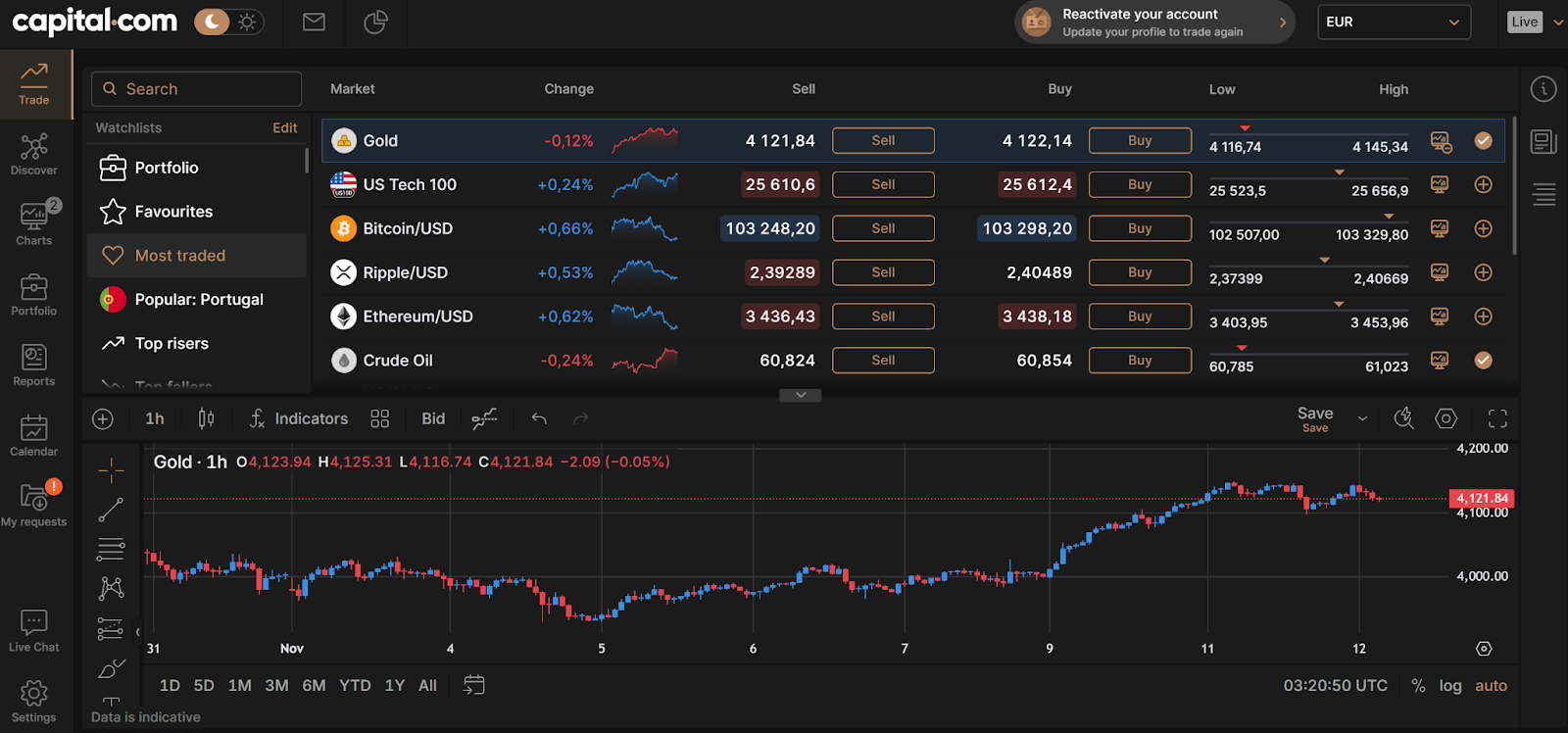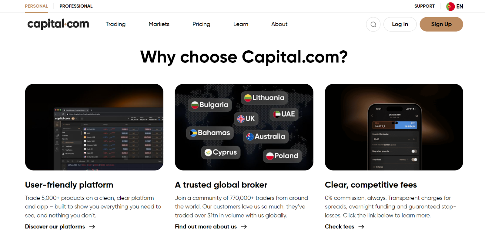 Capital.com wyróżnia się strukturą zerowych prowizji (nadal obowiązują spready) oraz dostępem do szerokiej gamy rynków. Jest szczególnie odpowiedni dla aktywnych traderów, którzy chcą handlować krótkoterminowymi wahaniami cen z wykorzystaniem dźwigni finansowej.