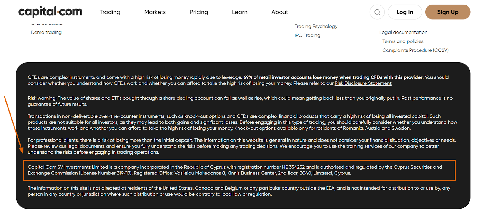 Capital.com działa w Europie za pośrednictwem Capital Com SV Investments Ltd, regulowanej przez Cypryjską Komisję Papierów Wartościowych i Giełd (CySEC) na podstawie licencji numer 319/17.