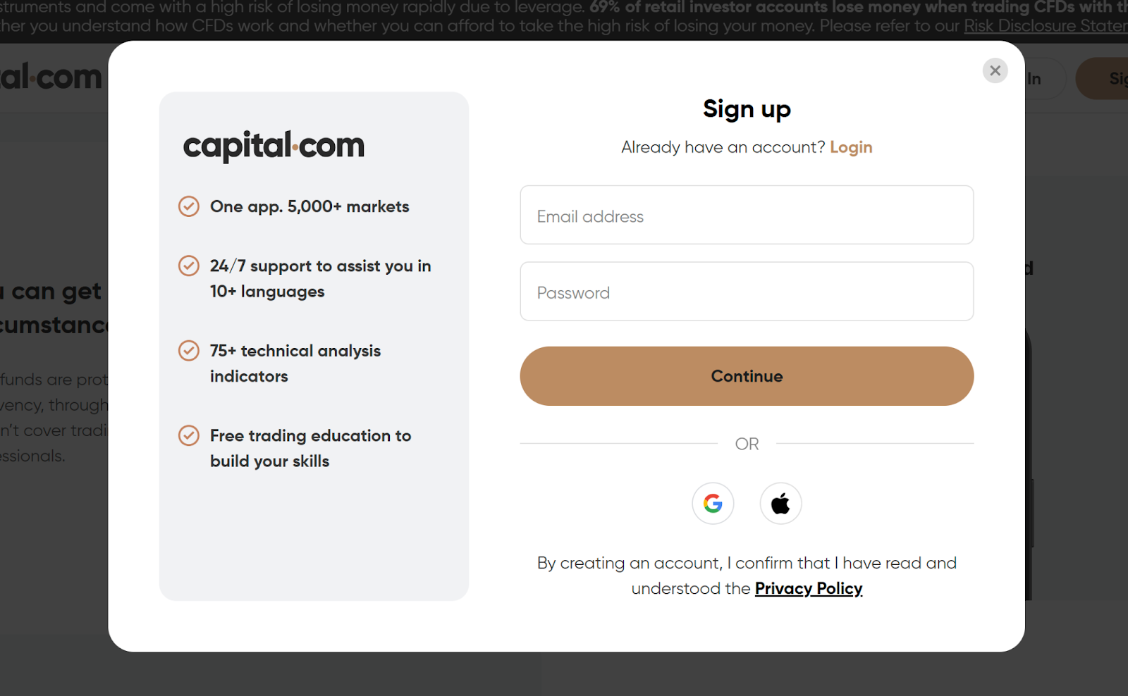 Podczas otwierania konta na Capital.com upewnij się, że rejestrujesz się w ramach podmiotu europejskiego/brytyjskiego, a nie żadnego offshore.