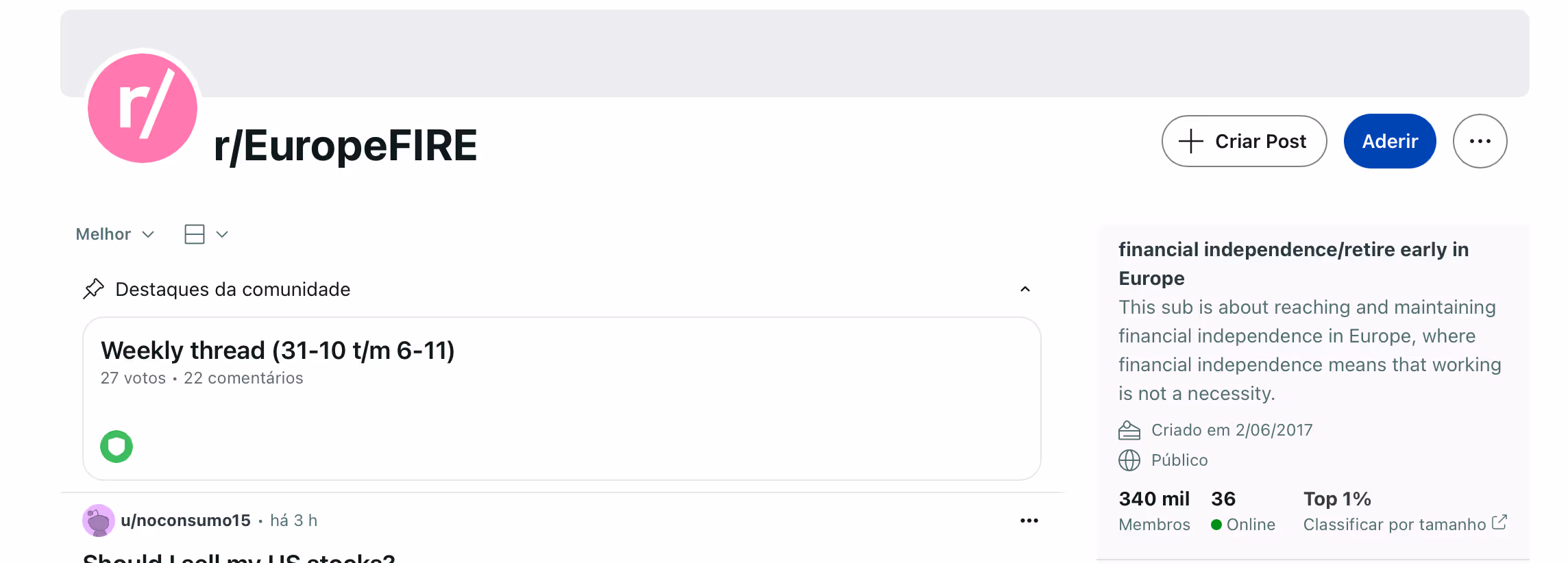 Subreddit skupiający się na niezależności finansowej i wczesnej emeryturze dla Europejczyków. Członkowie dyskutują na temat inwestowania, strategii podatkowych i finansów osobistych w różnych krajach UE.