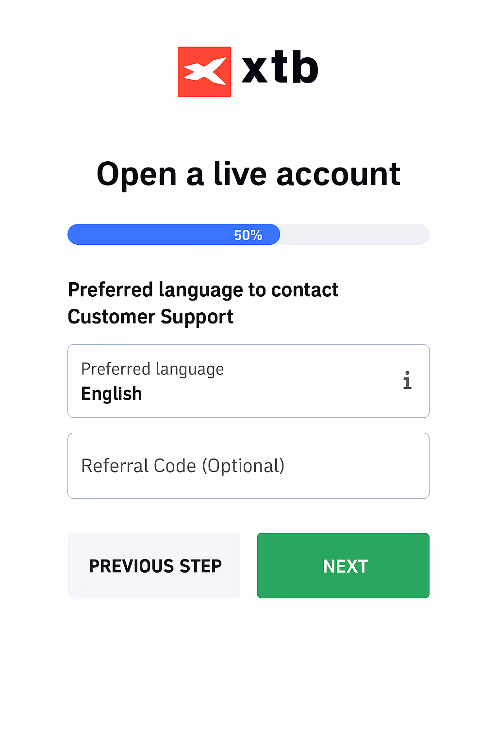 - Kliknij link XTB - otworzy on bezpieczny formularz XTB.